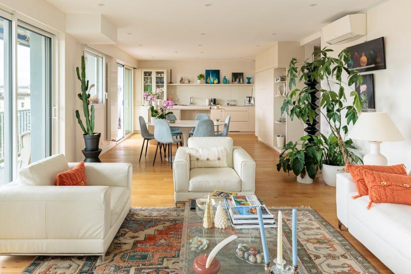 Entièrement rénové en 2021 avec des prestations de grande qualité, il propose une belle pièce de vie baignée de lumière, ouverte sur la terrasse ainsi qu’une cuisine contemporaine parfaitement aménagée et équipée, complétée par une arrière-cuisine / buanderie.