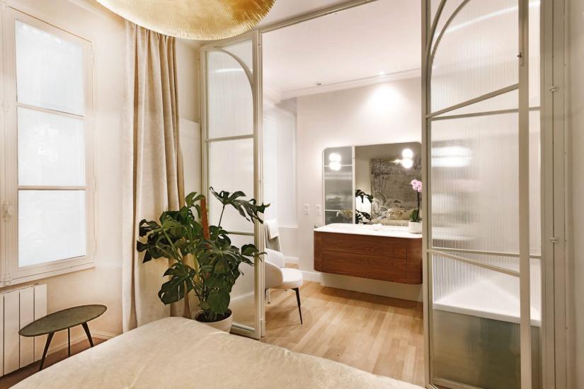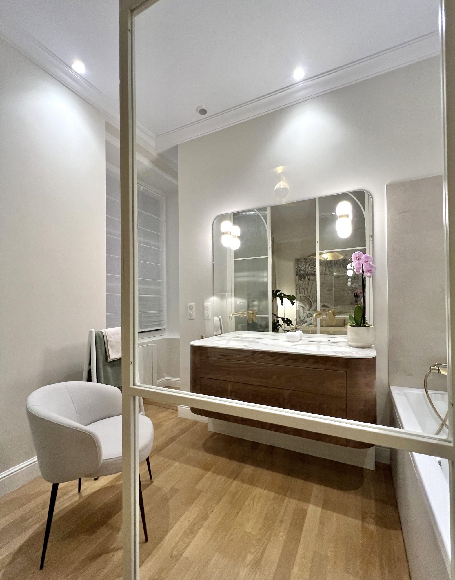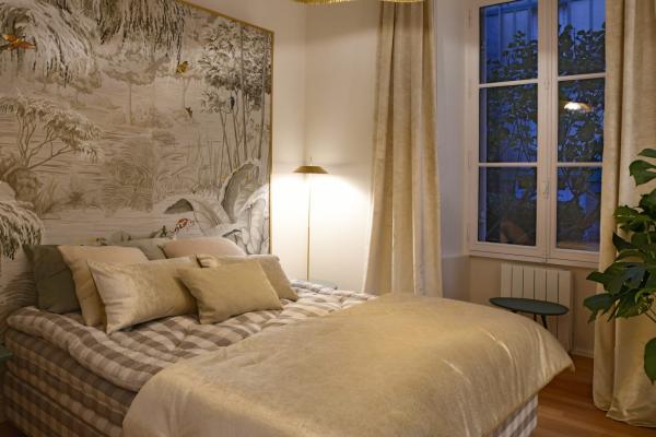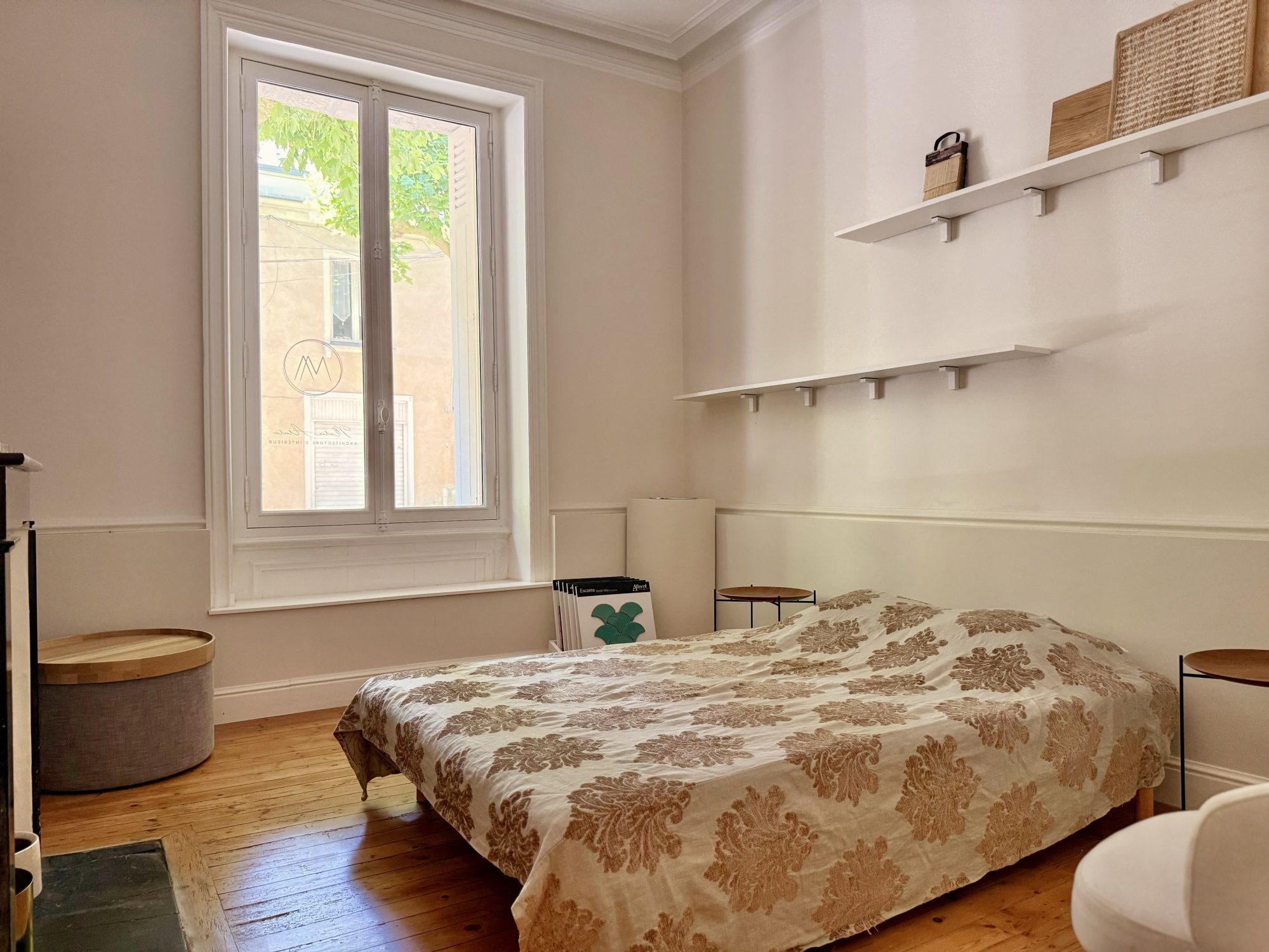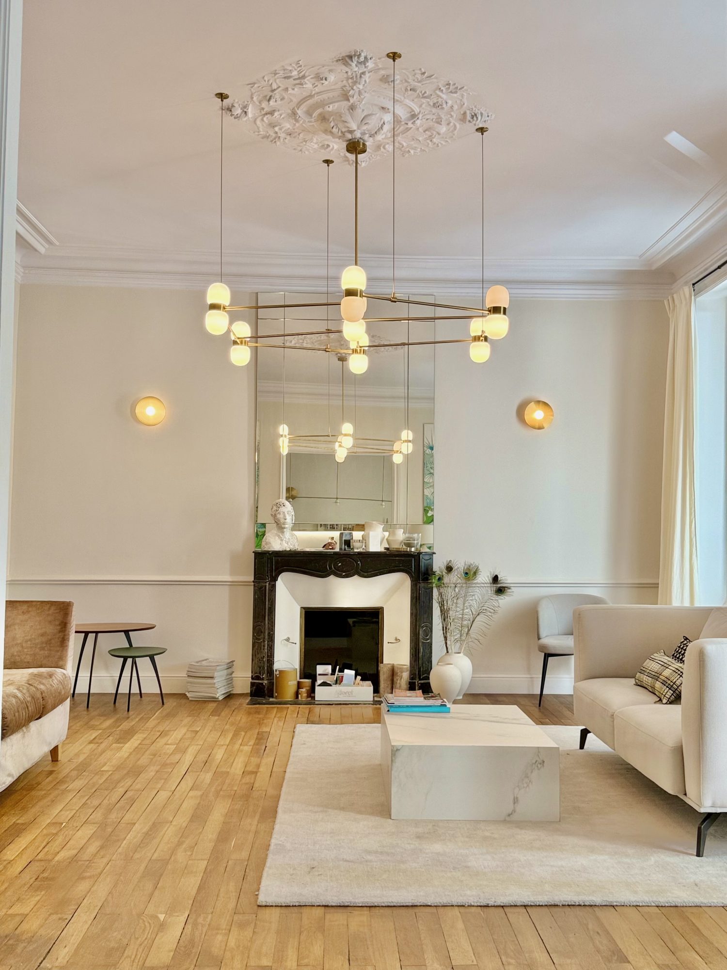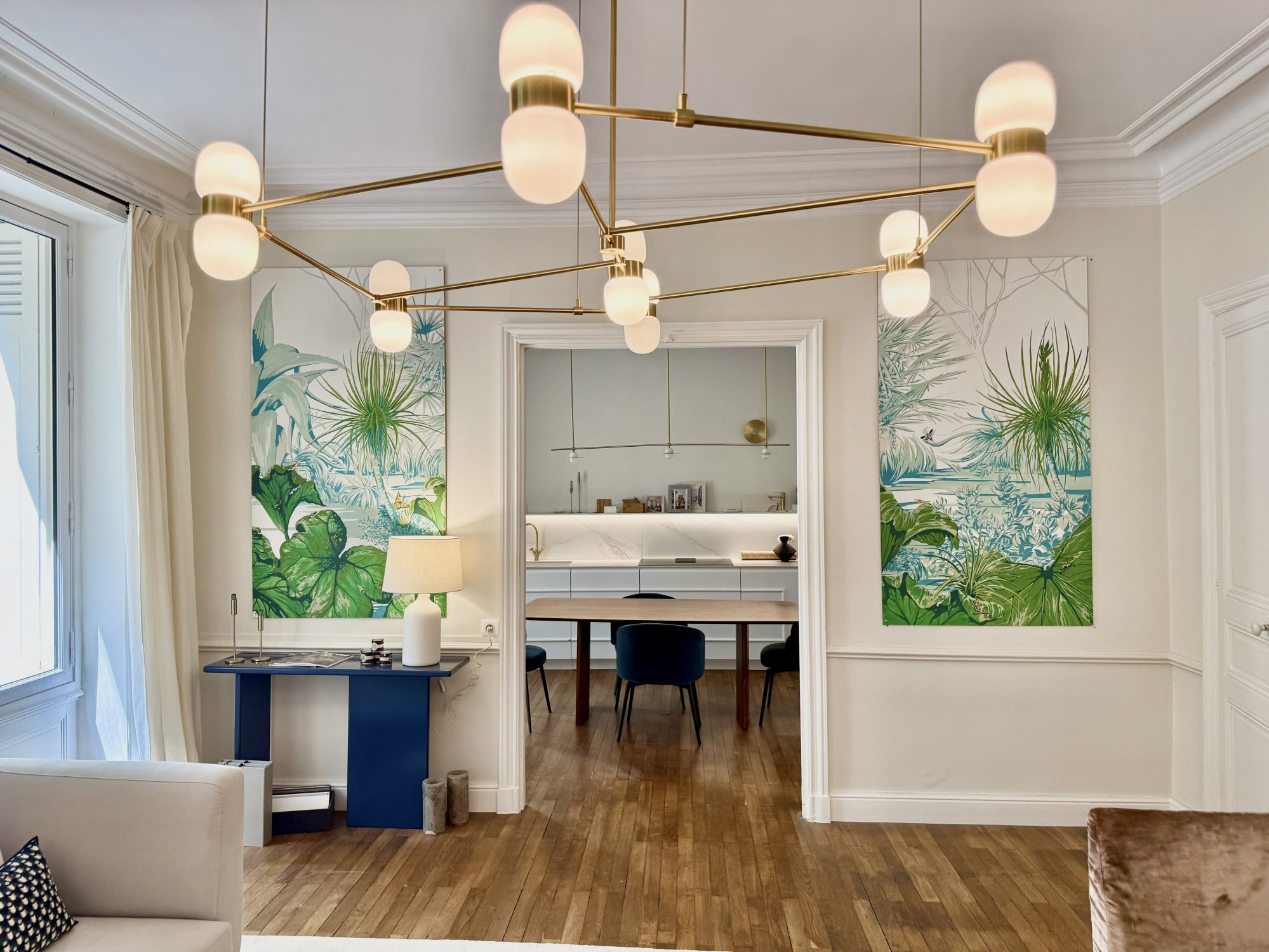 Aménagé en appartement T4 avec 3 chambres et 2 salles d’eau, il offre de beaux volumes, une splendide cuisine aménagée/équipée ouverte sur un vaste séjour lumineux, ainsi que des éléments anciens conservés (parquet, moulures, rosaces, cheminées, belle hauteur sous plafond…).