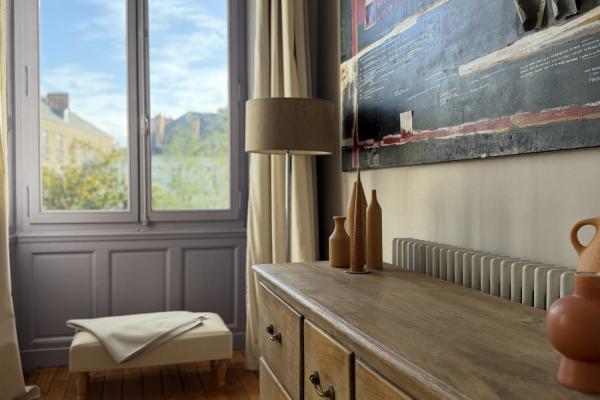 Vous profiterez également d’un petit balcon détente, offrant une vue dégagée sur les toits nantais et sur le jardin de l’hôtel particulier — un véritable havre de paix au calme absolu en plein cœur de la ville.