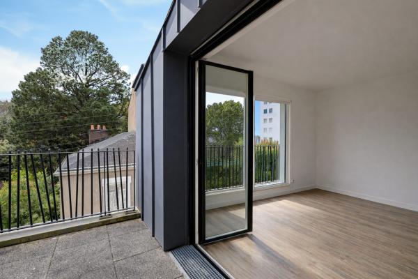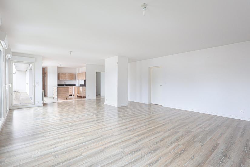 Au dernier étage d’une résidence récente, appartement traversant de 156 m², baigné de lumière et ouvert sur deux vastes terrasses aux vues dégagées.