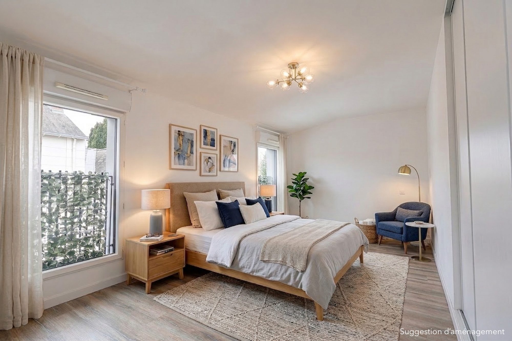 La pièce de vie, généreuse et conviviale, s’accompagne d’une cuisine ouverte et se prolonge naturellement vers l’extérieur. L’espace nuit accueille trois chambres, dont une avec accès direct à la seconde terrasse, ainsi qu’une salle de bains et une salle d’eau. Une quatrième chambre peut aisément être envisagée.