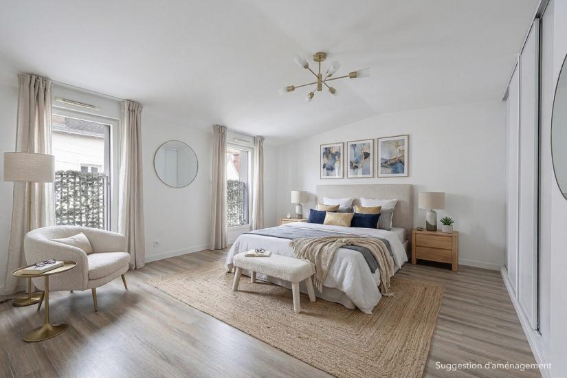La pièce de vie, généreuse et conviviale, s’accompagne d’une cuisine ouverte et se prolonge naturellement vers l’extérieur. L’espace nuit accueille trois chambres, dont une avec accès direct à la seconde terrasse, ainsi qu’une salle de bains et une salle d’eau. Une quatrième chambre peut aisément être envisagée.