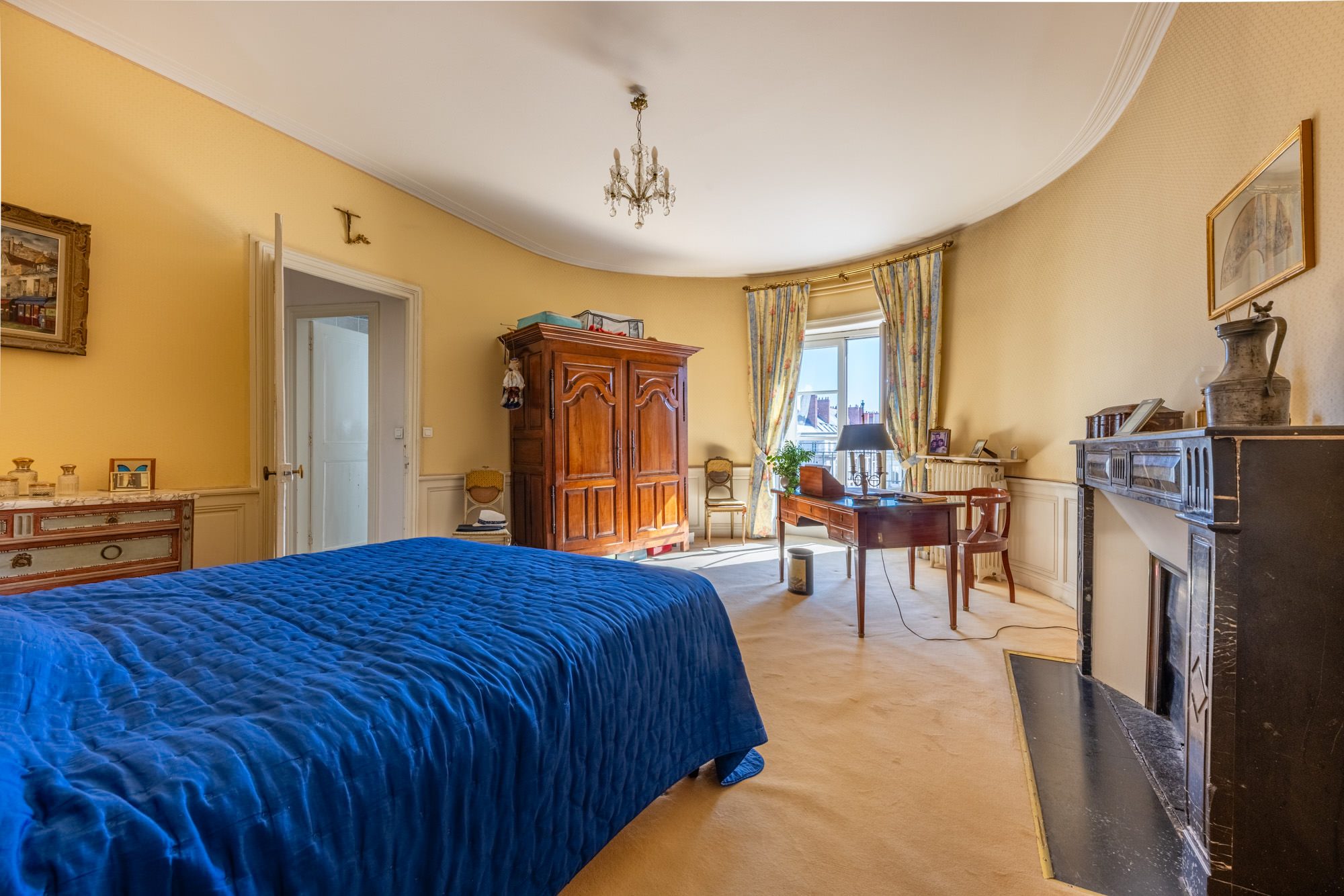 Une très belle entrée en rotonde desservant un superbe séjour ovale avec balcon filant offrant une superbe vue sur la place Graslin, petit salon avec vue sur la place Graslin, une grande salle à manger, une cuisine aménagée, 3 chambres dont un appartement parents de 25m² avec vue sur la place Graslin et salle de bains et une salle d’eau avec WC.
