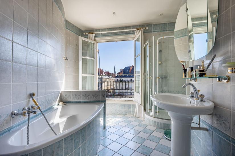 Une très belle entrée en rotonde desservant un superbe séjour ovale avec balcon filant offrant une superbe vue sur la place Graslin, petit salon avec vue sur la place Graslin, une grande salle à manger, une cuisine aménagée, 3 chambres dont un appartement parents de 25m² avec vue sur la place Graslin et salle de bains et une salle d’eau avec WC.