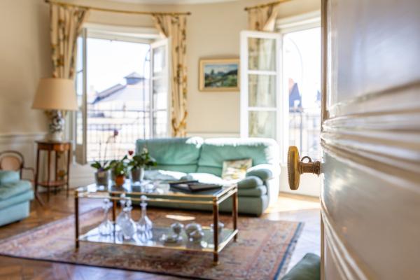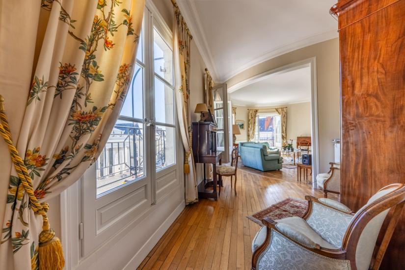 Une très belle entrée en rotonde desservant un superbe séjour ovale avec balcon filant offrant une superbe vue sur la place Graslin, petit salon avec vue sur la place Graslin, une grande salle à manger, une cuisine aménagée, 3 chambres dont un appartement parents de 25m² avec vue sur la place Graslin et salle de bains et une salle d’eau avec WC.