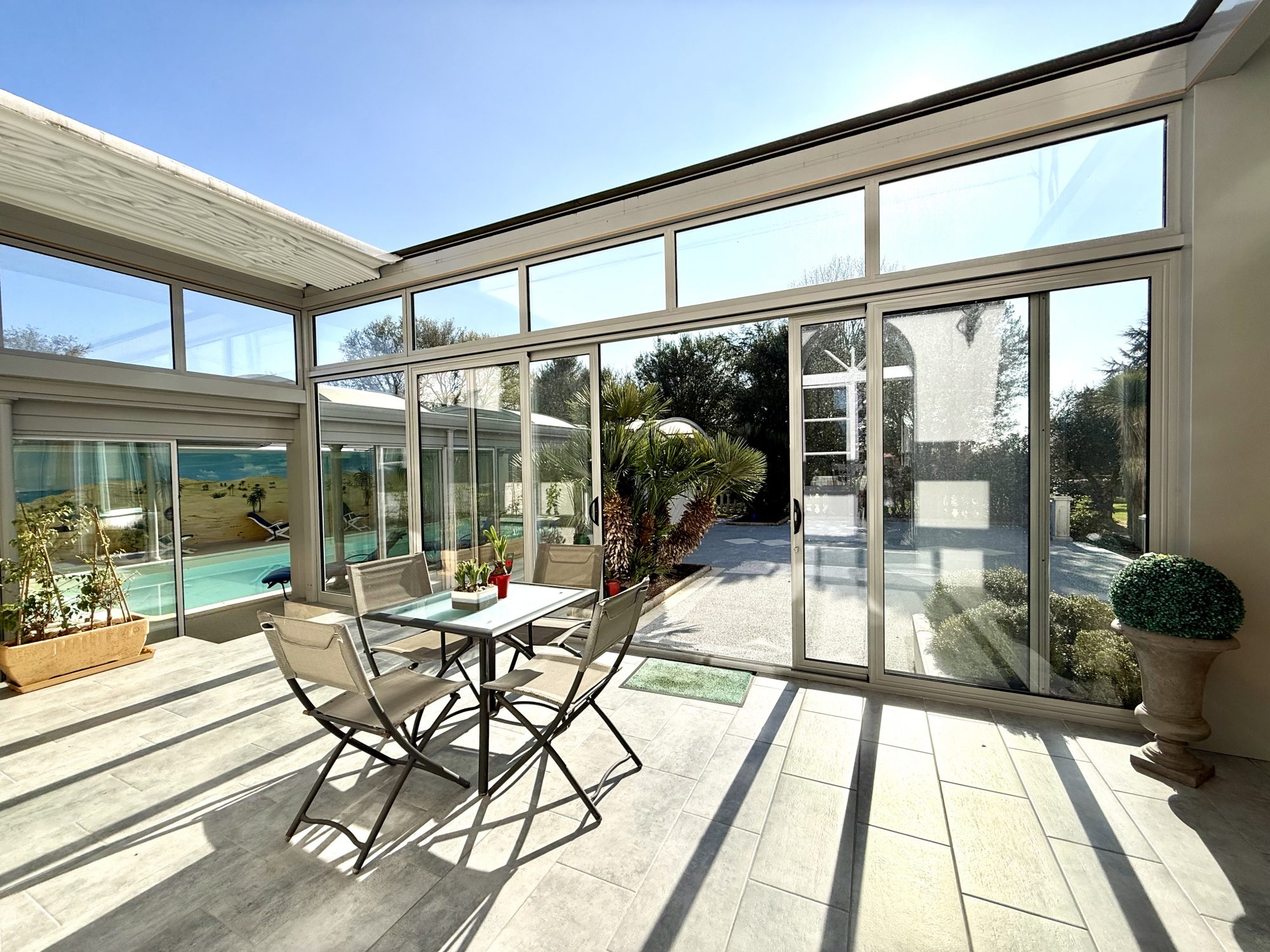 Cette demeure bourgeoise aux beaux volumes offre de multiples espaces de réceptions, des vues panoramiques sur son parc arboré & son étang clos de mur ainsi que sa vaste piscine à toit ouvrant et son espace plus confidentiel avec bar - cave à vin & cuisine/barbecue d'extérieur.