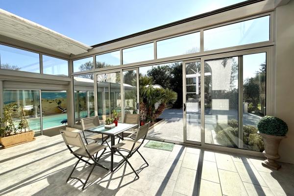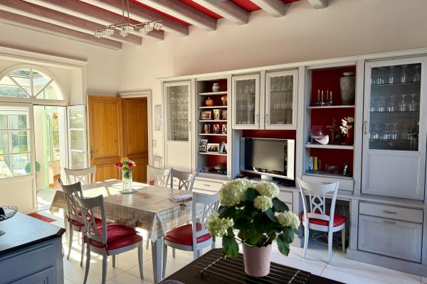 Cette demeure bourgeoise aux beaux volumes offre de multiples espaces de réceptions, des vues panoramiques sur son parc arboré & son étang clos de mur ainsi que sa vaste piscine à toit ouvrant et son espace plus confidentiel avec bar - cave à vin & cuisine/barbecue d'extérieur.
