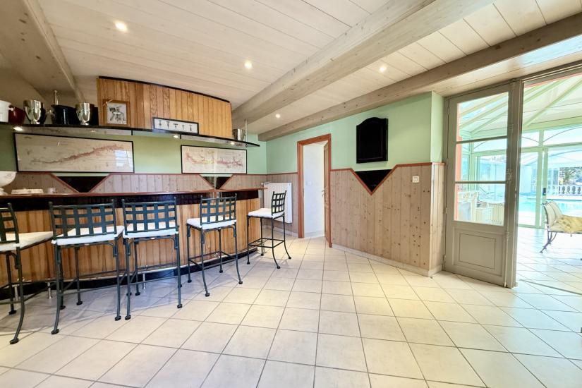 Cette demeure bourgeoise aux beaux volumes offre de multiples espaces de réceptions, des vues panoramiques sur son parc arboré & son étang clos de mur ainsi que sa vaste piscine à toit ouvrant et son espace plus confidentiel avec bar - cave à vin & cuisine/barbecue d'extérieur.