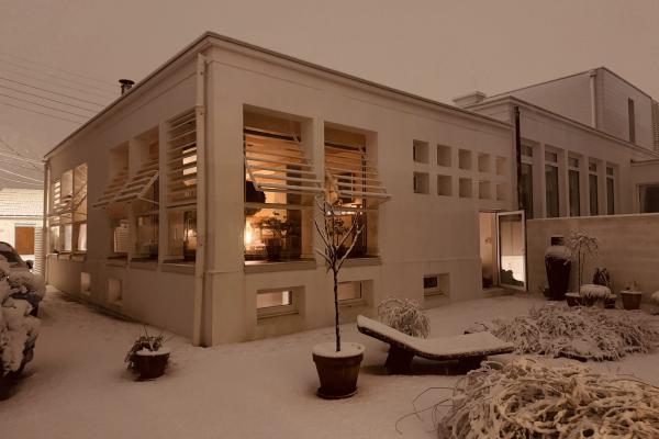 À l’abri des regards, au cœur d’un quartier vivant et recherché de l’ouest nantais, à proximité des bords de Loire et de toutes commodités, cette maison issue de la transformation complète d’un bâtiment des années 60 offre une architecture singulière et une atmosphère résolument contemporaine.