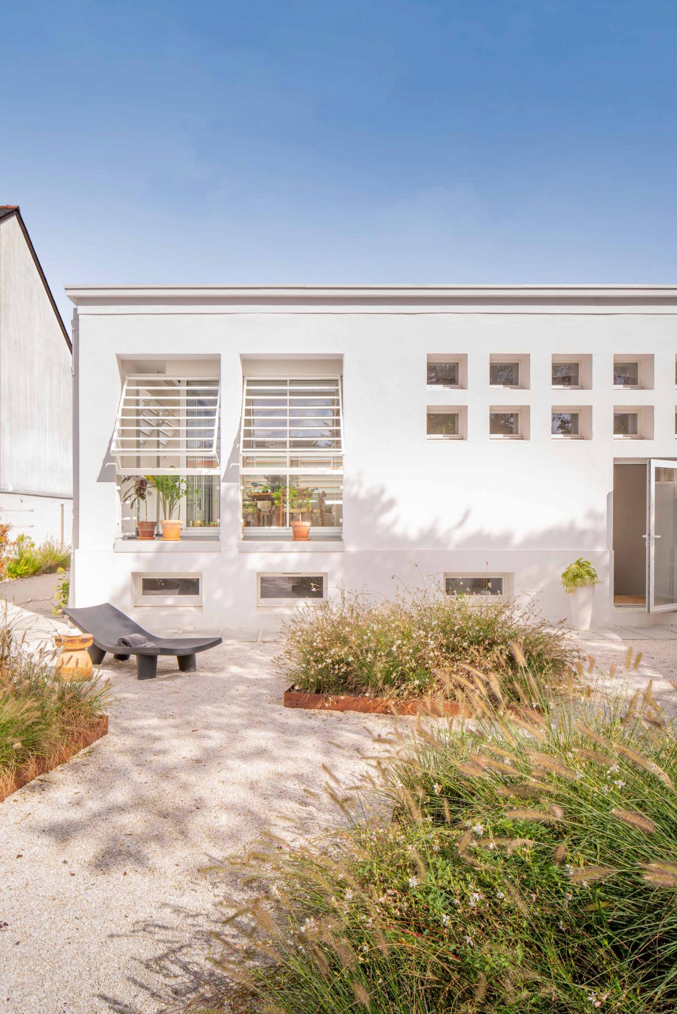 À l’abri des regards, au cœur d’un quartier vivant et recherché de l’ouest nantais, à proximité des bords de Loire et de toutes commodités, cette maison issue de la transformation complète d’un bâtiment des années 60 offre une architecture singulière et une atmosphère résolument contemporaine.
