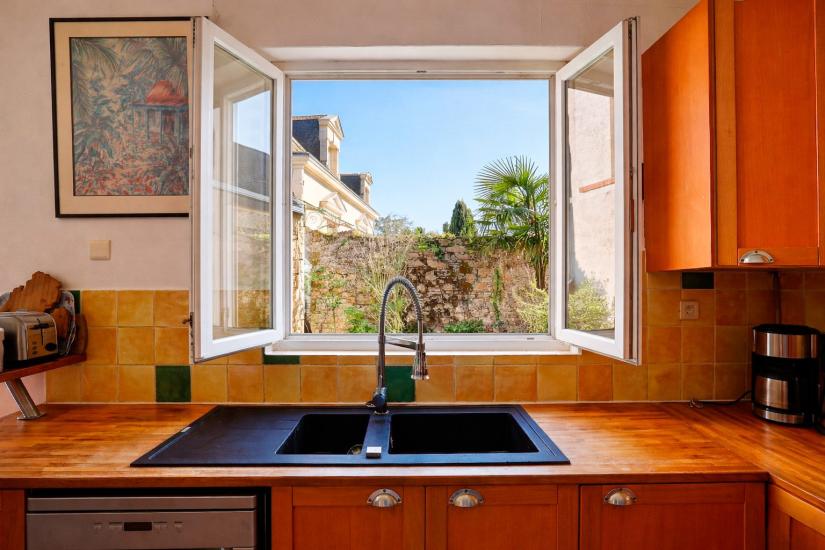 La maison dispose de nombreux rangements, d’un abri de jardin et d’un accès direct au jardin depuis la rue, particulièrement pratique pour les vélos.