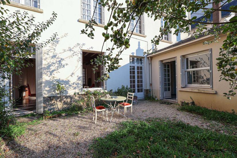 Au RDC, l'entrée spacieuse dessert un double séjour de plain pied avec le jardin exposé Est/Ouest, avec cheminée, une cuisine indépendante ouverte sur le jardin avec une double exposition suivie d'une arrière cuisine, une chambre, un wc et une salle d'eau.