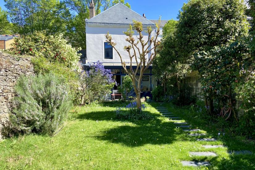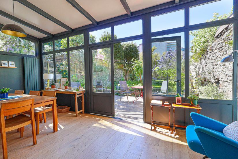 Maison 1900 entièrement rénovée à la charmante façade côté jardin soulignée par une élégante verrière contemporaine.