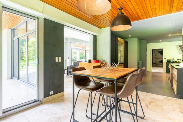 Baignée de lumière tout au long de la journée, la maison développe de superbes volumes avec une vaste suite parentale de plain-pied, de nombreuses chambres disposant chacune de leur salle d’eau, ainsi que de grandes pièces modulables selon vos envies : bibliothèque, salle de sport, espace de réception ou bureaux.
