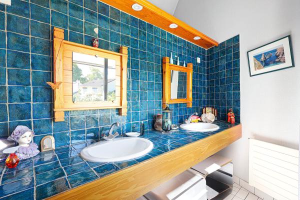 Le rez-de-chaussée propose également une première partie nuit composée de deux chambres, chacune disposant de sa salle d’eau privative, offrant confort et indépendance.