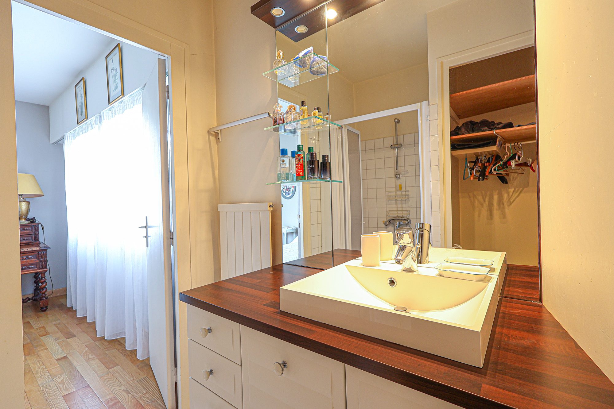 Le rez-de-chaussée propose également une première partie nuit composée de deux chambres, chacune disposant de sa salle d’eau privative, offrant confort et indépendance.