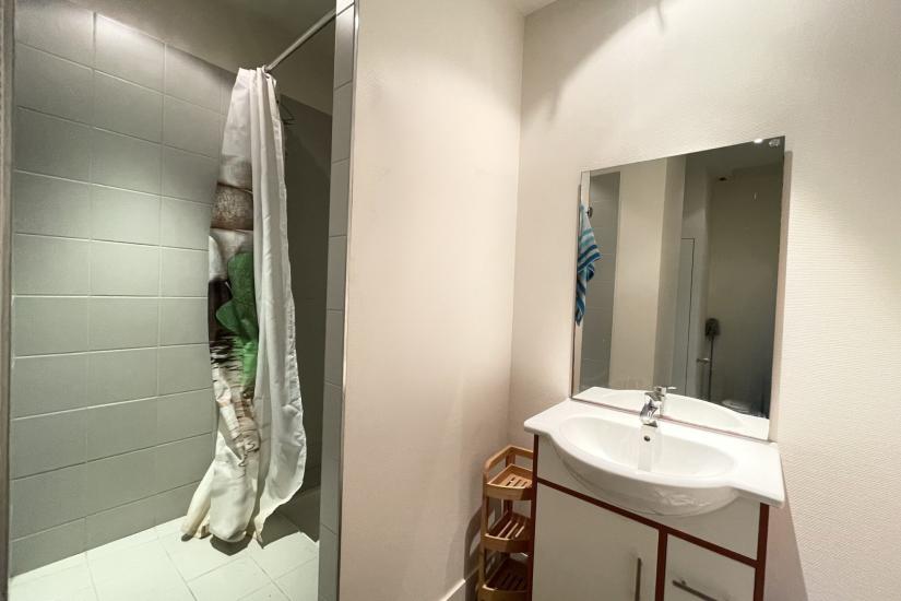 En hypercentre de Nantes, dans une arrière cours au calme. Ce spacieux T1 de 31m2 non meublé comprend une pièce de vie ainsi qu'une cuisine aménagée et équipée (plaques de cuisson, hotte, four, réfrigérateur) et une grande salle d'eau avec rangements et WC.