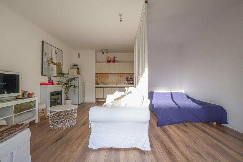 Au cœur de Nantes, à proximité du Boulevard Guist'hau, cet appartement meublé, au 2ème étage, se compose d'une entrée desservant une salle de bain avec WC, une cuisine (micro-ondes, plaques de cuisson, réfrigérateur) ouverte sur la pièce à vivre et d'une verrière séparant l’espace nuit.