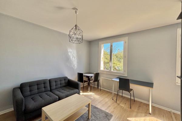 Il se compose d’une entrée avec un grand placard, d’une pièce de vie lumineuse avec cuisine ouverte aménagée et équipée (plaque de cuisson, réfrigérateur, four micro-ondes, lave-linge), d’une chambre, d’une salle d’eau et de WC.