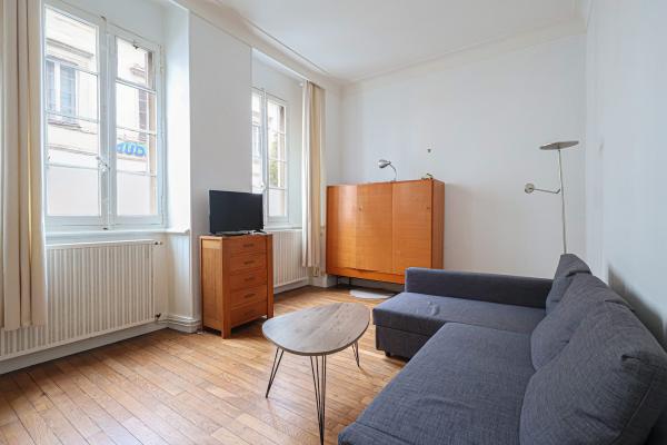 Au cœur de Nantes, à proximité de la place Aristide Briand, cet appartement meublé, au rez-de-chaussée, se compose d'une entrée, d'un séjour salon, d'une cuisine aménagée et équipée (four, micro-ondes, plaques de cuisson, réfrigérateur) donnant sur une cour intérieure privative, d'une belle chambre avec salle d'eau et d'un WC séparé.