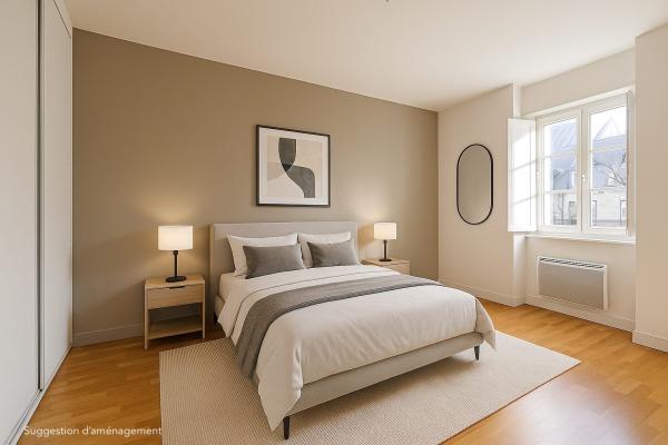 Hyper centre de Nantes, proche des commerces et des transports. Au 4ème étage avec ascenseur, très bel appartement de 60m² comprenant : une entrée avec placard, un grand séjour ouvert sur une cuisine aménagée et équipée (plaque/hotte), une chambre avec placard, une salle de douche avec WC. Belle terrasse de 7m².