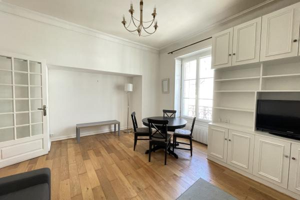 Au 1er étage, cet appartementT3 meublé de 61 m² est composé d'une entrée, deux chambre, un salon, une cuisine équipée. Ce bien est complété par une salle de bain, et un WC séparé.