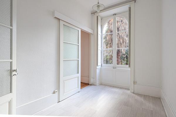Cet appartement de 60m² comprend une entrée, un séjour lumineux donnant sur une cour arborée, une cuisine aménagée et équipée (plaque, hotte), une chambre avec meuble dressing, un bureau, une salle d'eau et un WC indépendant.