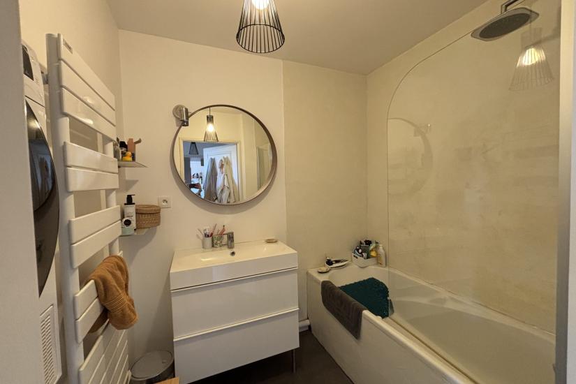 Il se compose d’un agréable séjour lumineux exposé Est, d’une cuisine aménagée et équipée (four, hotte, plaques de cuisson, réfrigérateur/congélateur, lave vaisselle), de deux chambres avec placards, ainsi que d'une salle d’eau.