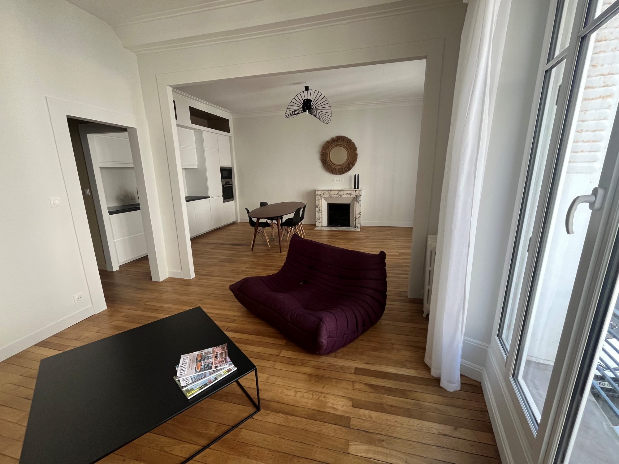 T3 Rue racine, un magnifique appartement meublé entièrement rénové. Cet appartement se compose d'une entrée desservant : un double salon séjour lumineux ouvert sur une cuisine aménagée et équipée, deux chambres et une salle de bain.