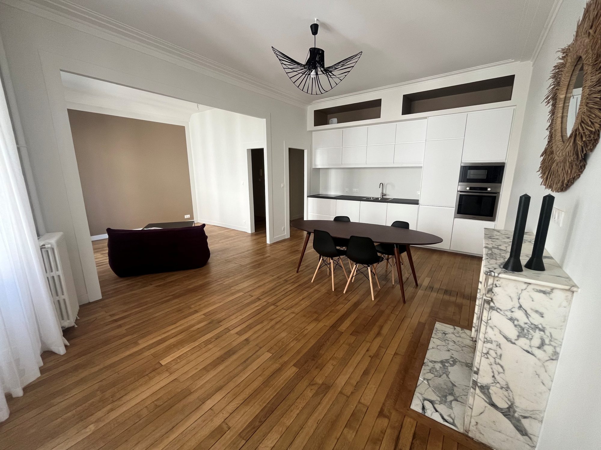 T3 Rue racine, un magnifique appartement meublé entièrement rénové. Cet appartement se compose d'une entrée desservant : un double salon séjour lumineux ouvert sur une cuisine aménagée et équipée, deux chambres et une salle de bain.