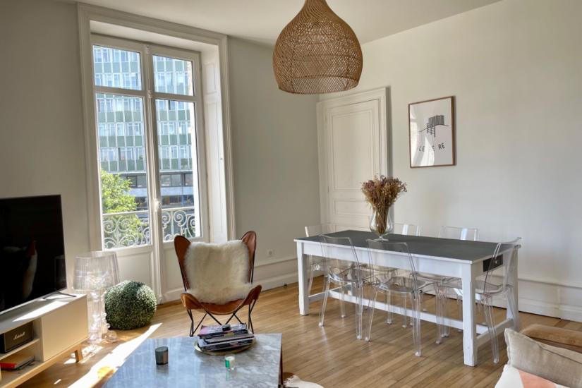 Bel appartement de 84 m², situé dans un immeuble ancien, offrant de beaux volumes et une belle luminosité.