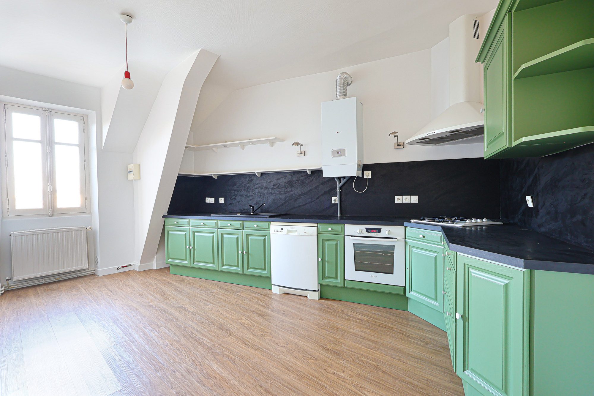 Loyer : 1447 + 100€ de provision pour charges comprenant la part locataire des charges de copropriété, la taxe d’enlèvement des ordures ménagères, et l’entretien annuel de la chaudière.