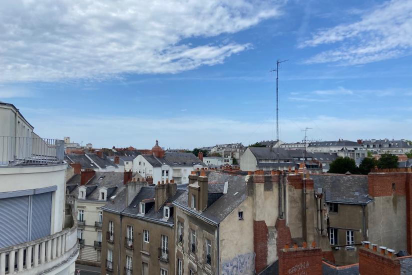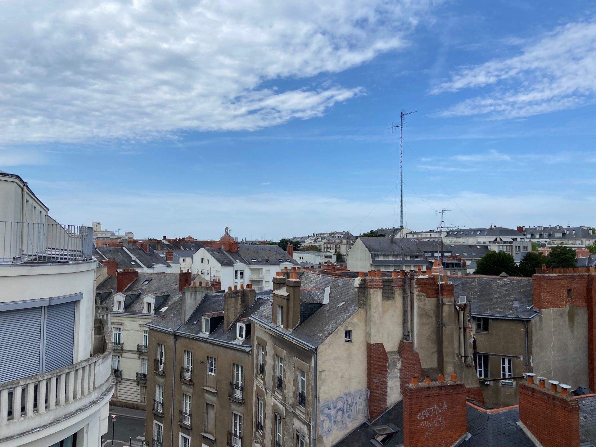 Copernic - Appartement lumineux de 117 m² comprenant de beaux volumes et une vue dégagée sur les toits de Nantes. En dernier étage avec ascenseur, il se compose d'un grand séjour sur parquet, d'une cuisine équipée avec une buanderie attenante, 3 chambres de bonne taille avec rangement. Situation recherchée en plein cœur du triangle d'or nantais, au pied des commerces et des transports. Cave et local à vélo.