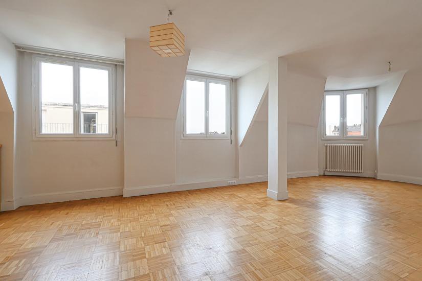 Copernic - Appartement lumineux de 117 m² comprenant de beaux volumes et une vue dégagée sur les toits de Nantes. En dernier étage avec ascenseur, il se compose d'un grand séjour sur parquet, d'une cuisine équipée avec une buanderie attenante, 3 chambres de bonne taille avec rangement. Situation recherchée en plein cœur du triangle d'or nantais, au pied des commerces et des transports. Cave et local à vélo.