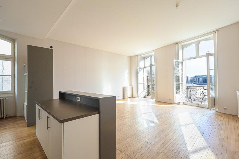 A proximité du Cours Cambronne, face à la Loire. Au 2ème étage avec ascenseur, ce bel appartement de 130m² se compose d'une entrée, d'un grand et lumineux salon séjour sur parquet, une cuisine ouverte, trois chambres, une salle de bain et wc séparé.