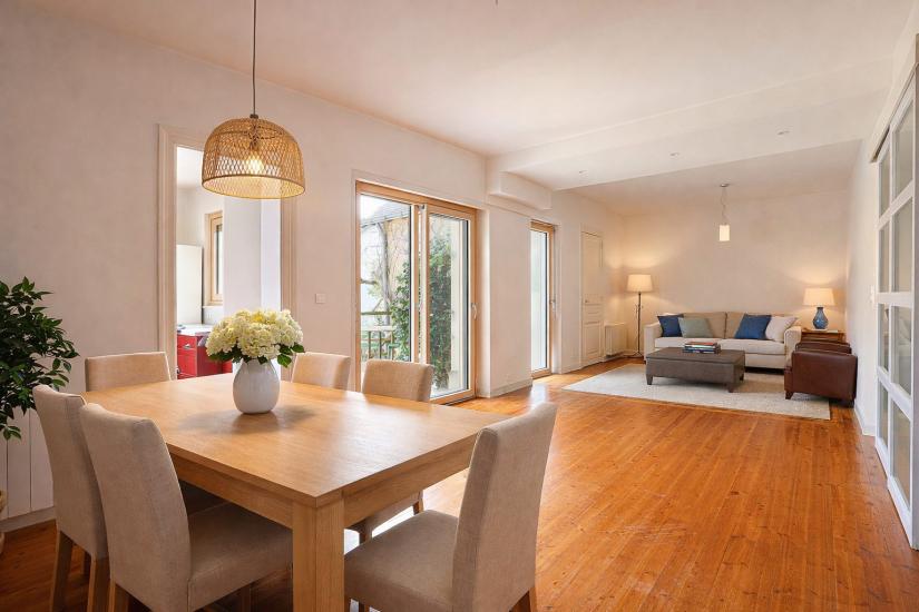 Développant près de 190 m² au sol, elle offre de beaux volumes, dont une pièce de vie d’environ 50 m², ainsi qu’une belle luminosité grâce à sa configuration traversante.