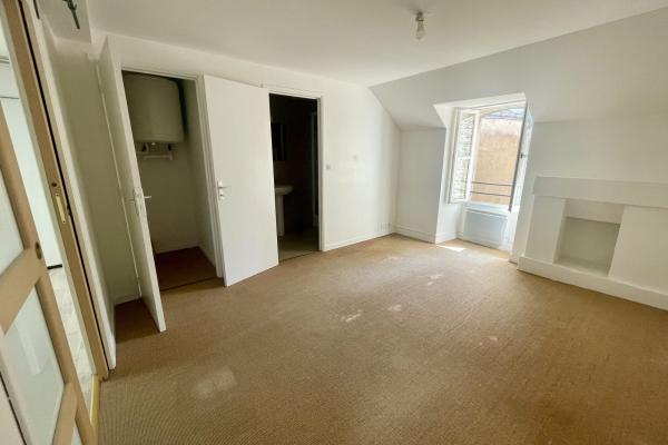 Nantes Cathédrale - Appartement T2 d'environ 38m² au 3ème étage offrant une pièce à vivre spacieuse avec coin cuisine, une chambre séparée et une salle d'eau.