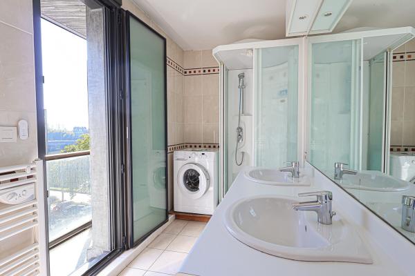 La partie nuit parfaitement dissocié, offre deux chambres avec accès également sur le balcon, une salle d'eau avec douche Jaccuzi, double vasque et un wc indépendant.