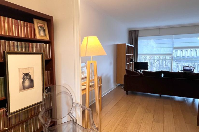 Entièrement rénové avec des matériaux de qualité, une entrée avec placards dessert un séjour de 27 m² exposé sud Ouest, un bureau ou salle à manger de 14 m2, une cuisine équipée et aménagée. Un espace nuit distribue deux grandes chambres avec placards dont une avec un large balcon, une salle d'eau et un WC séparé.