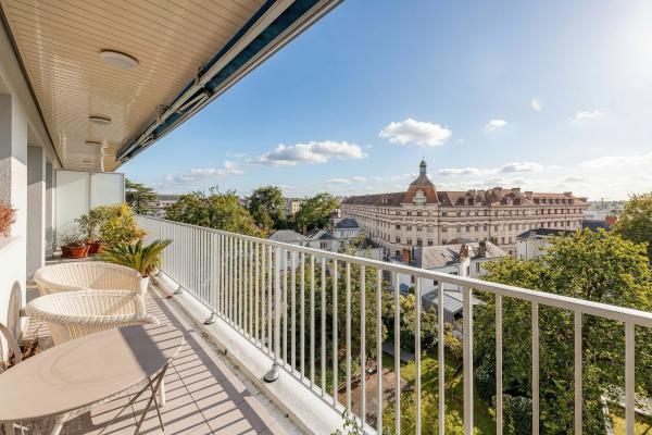 Au 5ᵉ étage avec ascenseur d’un immeuble de standing, cet appartement de 108 m² séduit d’emblée par sa luminosité et son large balcon-terrasse filant, idéalement exposé plein Sud, offrant une vue dégagée rare sur les toits de Nantes.