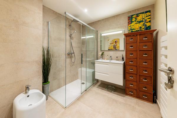 L’espace nuit se compose de deux chambres, dont une suite avec salle d’eau, ainsi qu’une salle de bains indépendante. WC séparés.