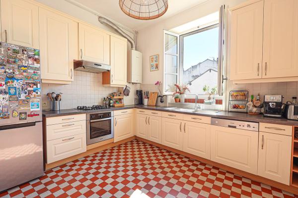 Il se compose d’une agréable pièce de vie avec cheminée, d’une grande cuisine aménagée et équipée, dinatoire et indépendante, permettant un véritable espace salle à manger. L’appartement offre deux chambres, avec la possibilité d’en créer une troisième en refermant le bureau, une salle de bains, une lingerie/dressing ainsi que deux w.c et une cave de 18m2 complète ce bien.