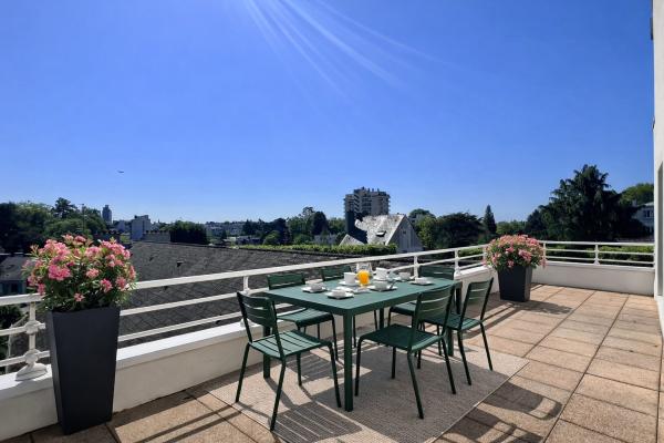 Nantes – Quartier ProcéAu dernier étage d’une résidence de standing, cet appartement en duplex séduit immédiatement par sa luminosité, ses terrasses et ses vues dégagées.