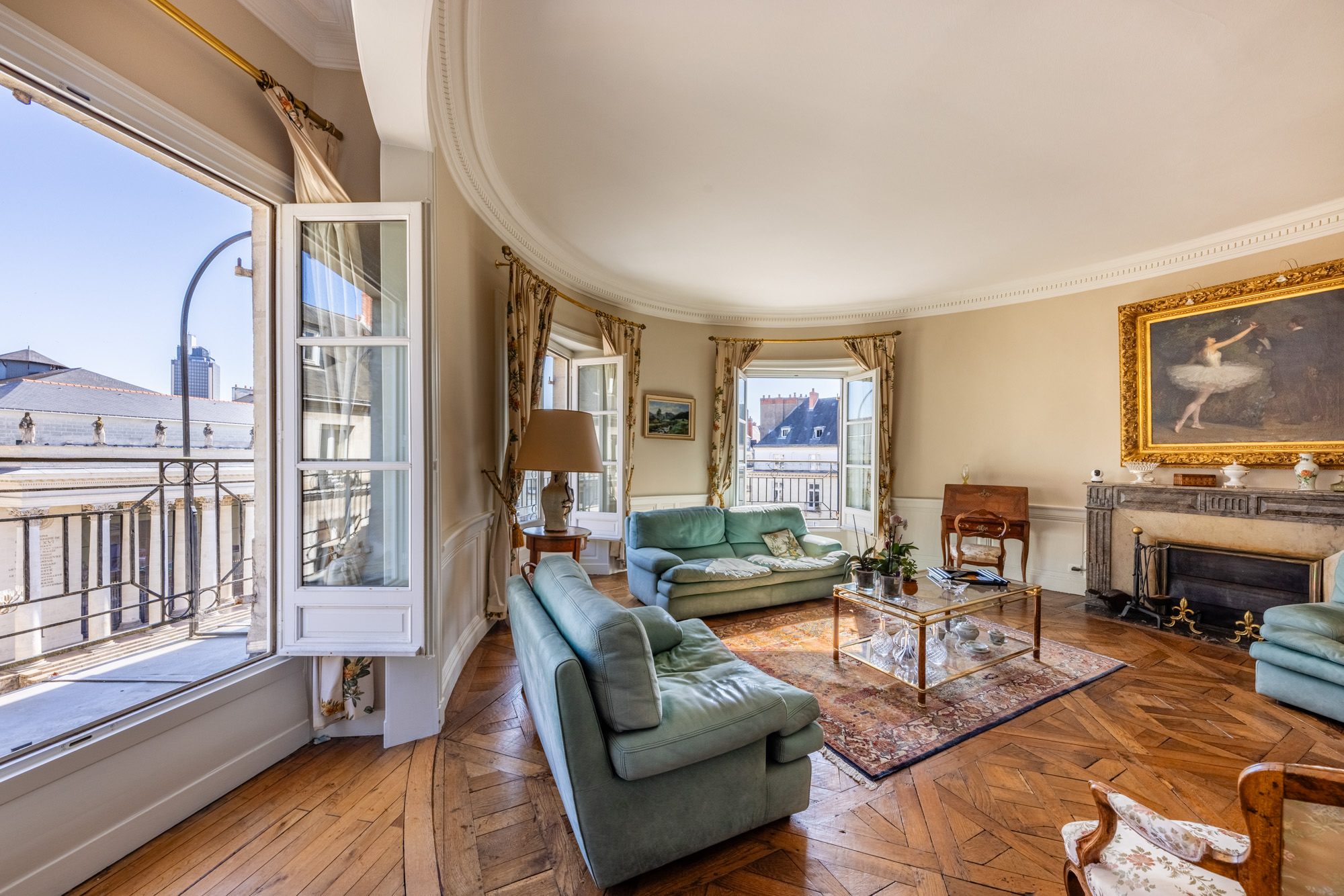 Une très belle entrée en rotonde desservant un superbe séjour ovale avec balcon filant offrant une superbe vue sur la place Graslin, petit salon avec vue sur la place Graslin, une grande salle à manger, une cuisine aménagée, 3 chambres dont un appartement parents de 25m² avec vue sur la place Graslin et salle de bains et une salle d’eau avec WC.