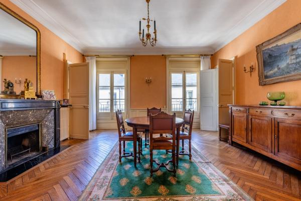 Situé sur l’emblématique Place Graslin, au coeur du centre historique de Nantes, dans un bel immeuble bourgeois fin XVIIIème siècle, au 4ème étage avec ascenseur, un appartement de caractère d’une superficie de 173m² carrez comprenant :