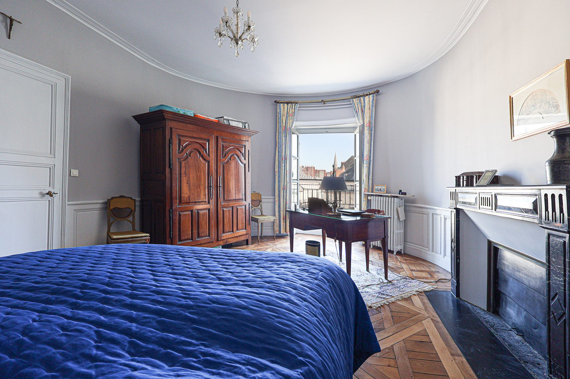 Situé sur l’emblématique Place Graslin, au coeur du centre historique de Nantes, dans un bel immeuble bourgeois fin XVIIIème siècle, au 4ème étage avec ascenseur, un appartement de caractère d’une superficie de 173m² carrez ( 182m² au sol) comprenant :