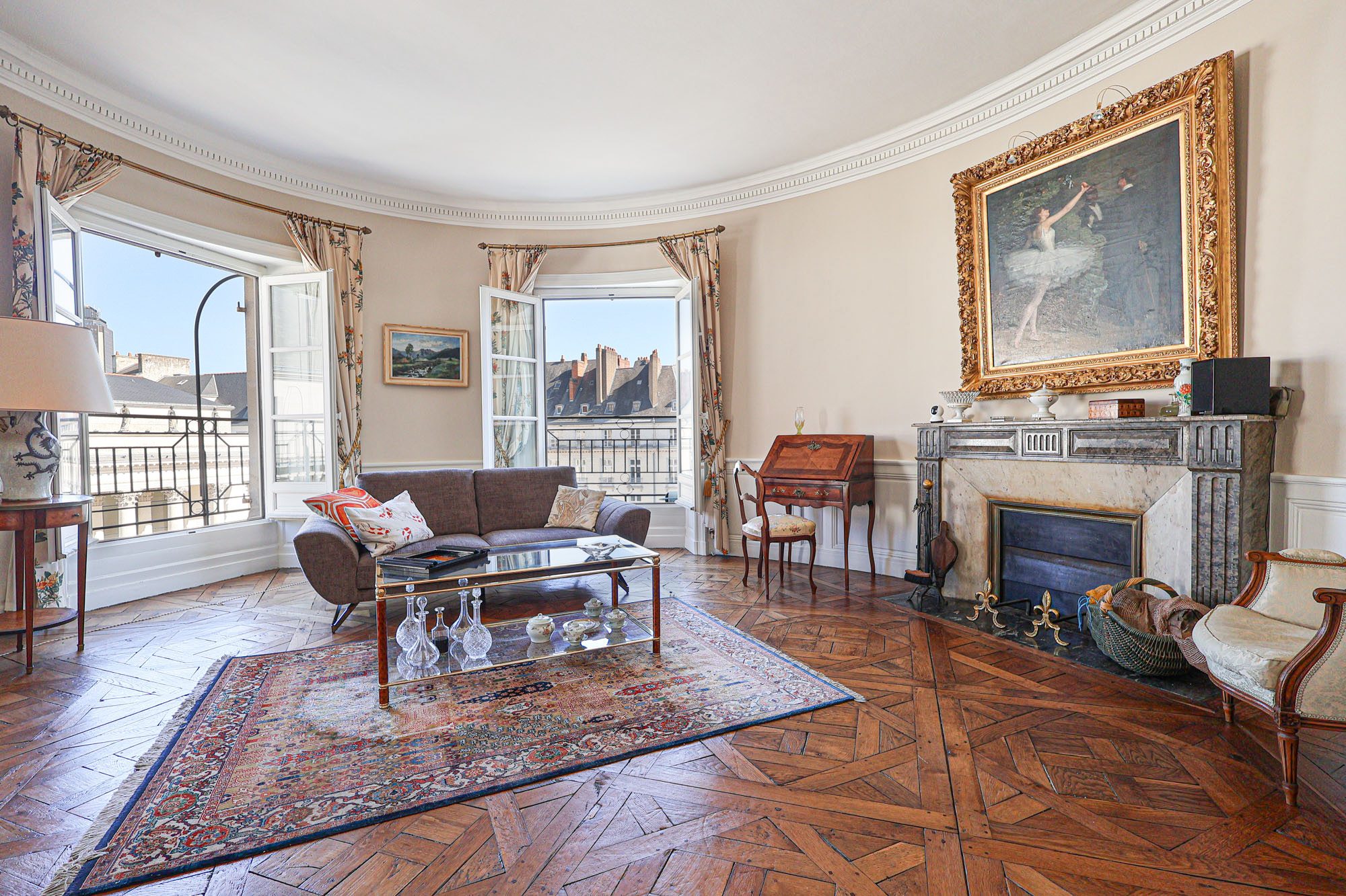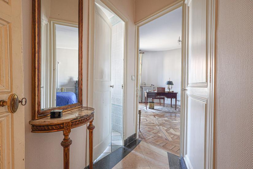 Une très belle entrée en rotonde desservant un superbe séjour ovale avec balcon filant offrant une superbe vue sur la place Graslin, petit salon avec vue sur la place Graslin, une grande salle à manger, une cuisine aménagée, 3 chambres dont un appartement parents de 25m² avec vue sur la place Graslin et salle de bains et une salle d’eau avec WC.
