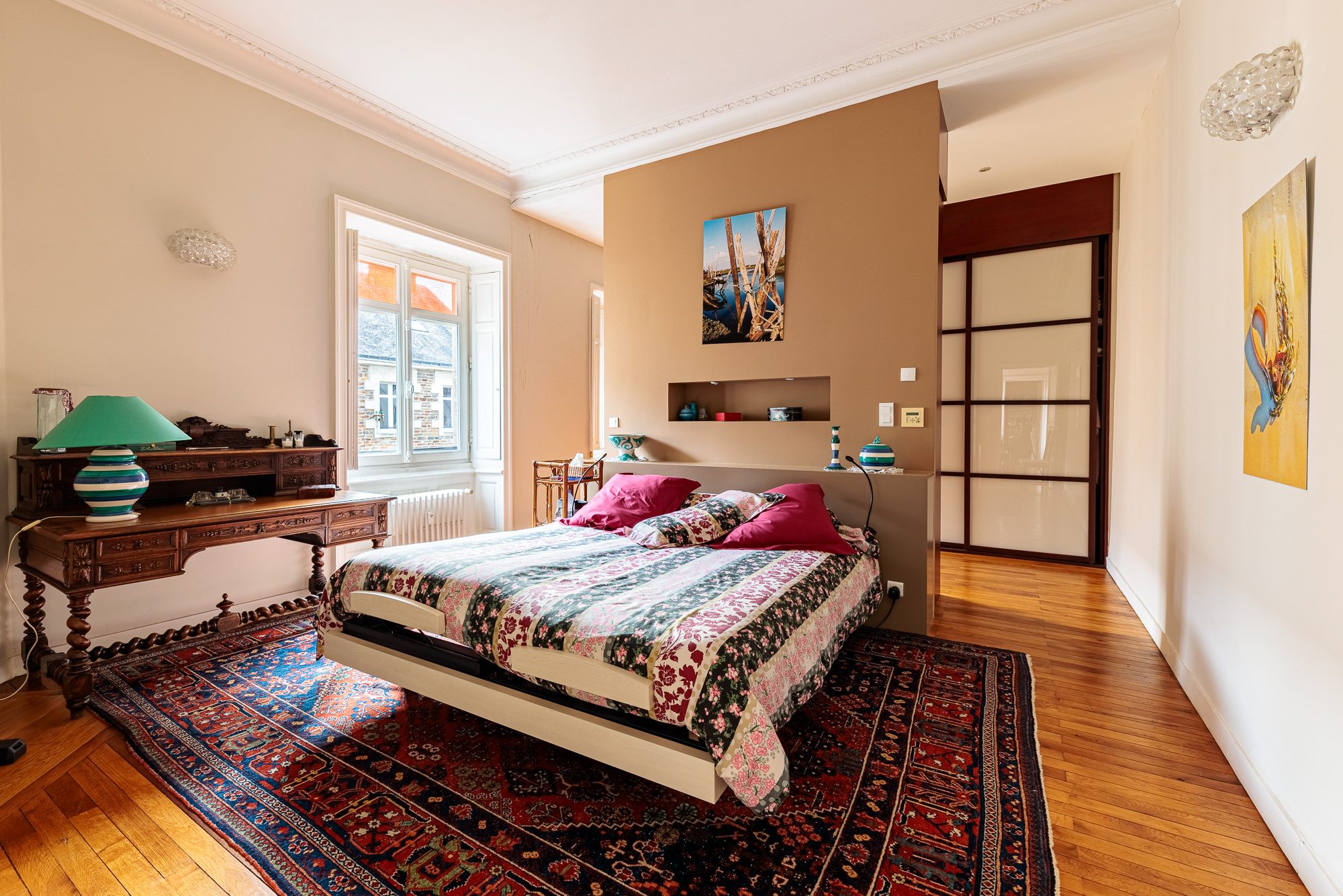 Vous serez séduits par ses beaux volumes de réception, le cachet de l'ancien (hauteur sous plafond, moulures, rosaces, parquet, cheminées...,), sa luminosité, ses jolies vues et son emplacement privilégié.