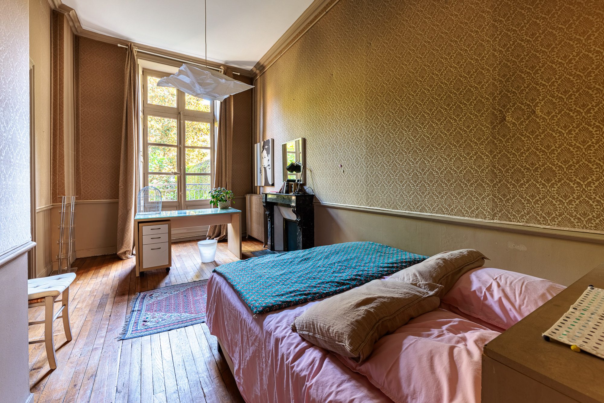 Les parquets, les cheminées et la hauteur sous plafond ajoutent une touche d'élégance à cet appartement.
