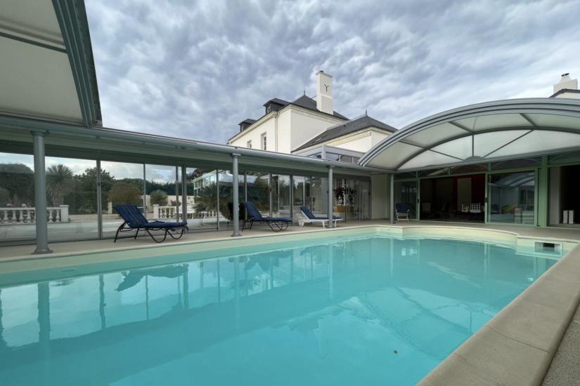 Cette demeure bourgeoise aux beaux volumes offre de multiples espaces de réceptions, des vues panoramiques sur son parc arboré & son étang clos de mur ainsi que sa vaste piscine à toit ouvrant et son espace plus confidentiel avec bar - cave à vin & cuisine/barbecue d'extérieur.